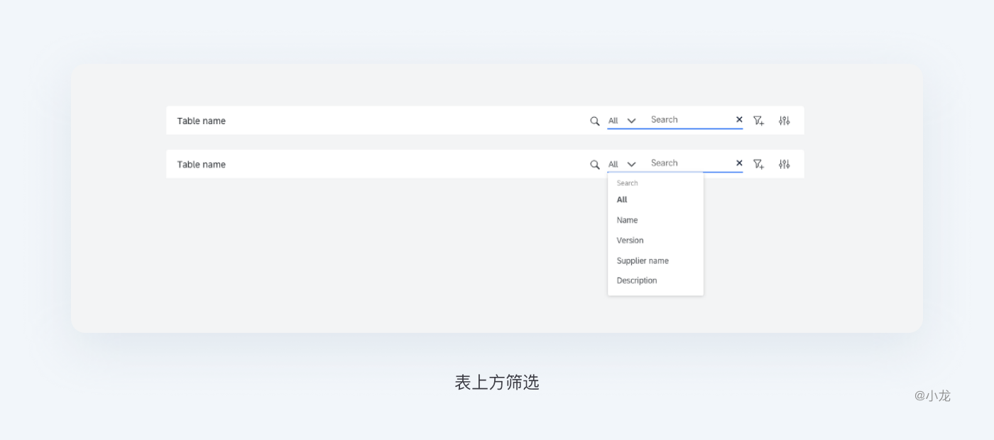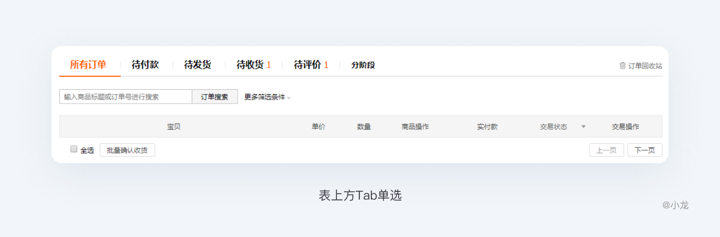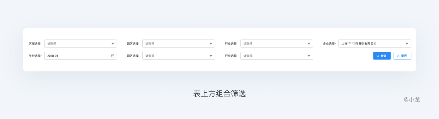 這里特指位於表頭的上方的操作區域,包含篩選,操作按鈕等其他操作。篩選區包含模糊搜索和條件篩選,按鈕分為增刪改和其它業務處理操作,合理設計篩選區可以大大提高用戶的效率。