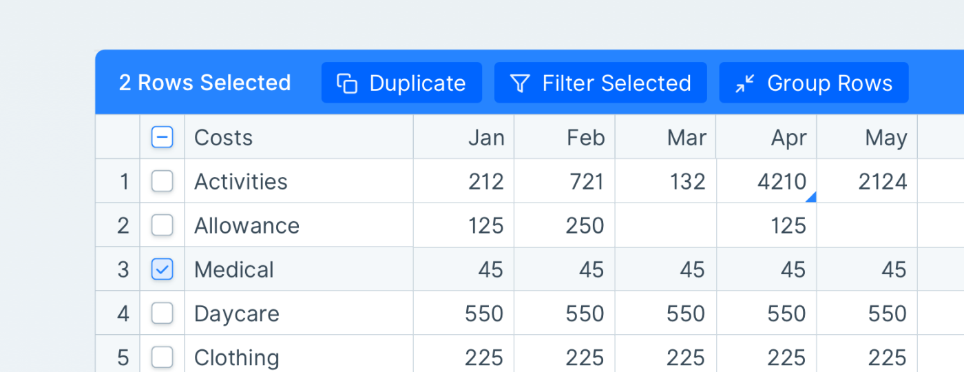 由於存在多個數據標題和列,我們只能根據表格的寬度來展示數據。在某些情況下,表格可允許用戶選擇他們關注的列,在其固定寬度基礎上,讓用戶可以自由拖動列寬邊緣以調整列寬。