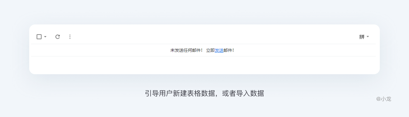 當表格數據為空時,在表格的空白內容處加入可創建的快捷入口,引導用戶新建表格數據,或者導入數據。如下圖郵箱已發送郵箱為空時:
