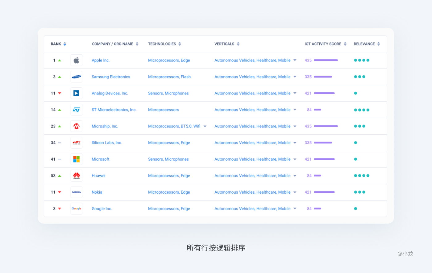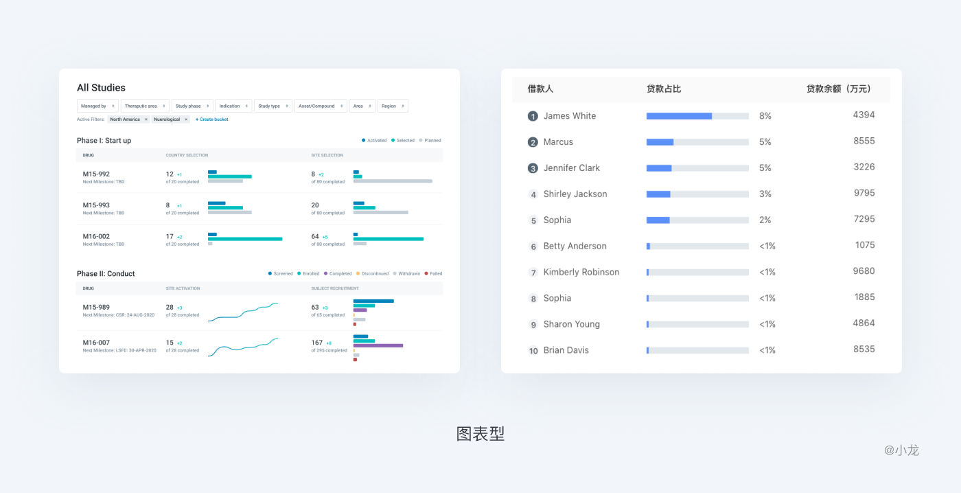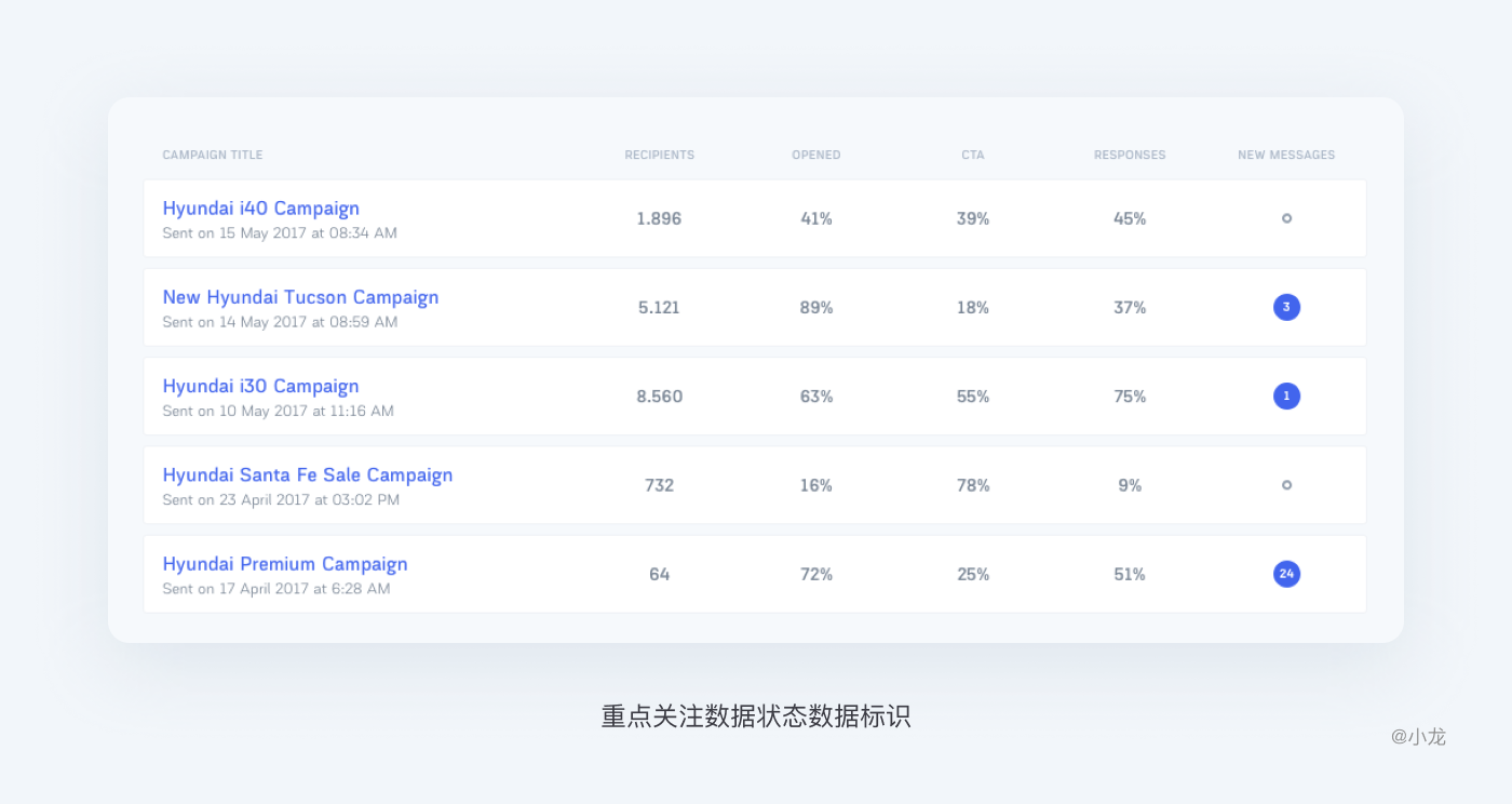同時可以對行內信息進行擴充,進一步弱化表格形式,豐富各類信息的視覺呈現,同時兼顧行與行之間的關鍵信息的對比,如上文表格佈局提到的圖表的使用。