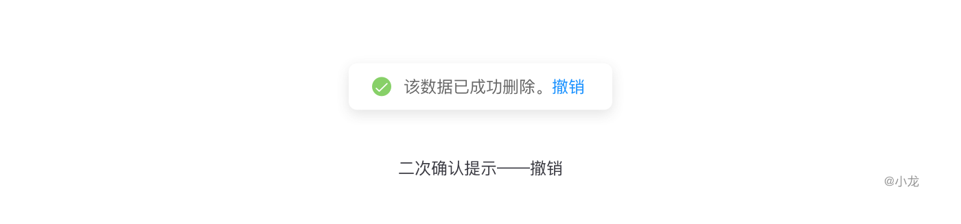 二次確認提示:對於用戶操作結果給出提示窗反饋,用戶點擊「刪除」後,直接操作;出現提示框告知用戶操作成功,並提供用戶「撤銷」的按鈕;用戶進行下一個操作或者15s內不進行任何操作,提示框消失,用戶無法再「撤銷」。
