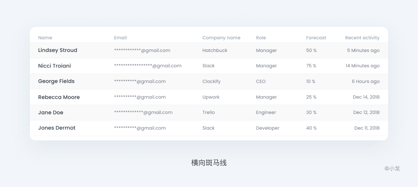水平分隔線,能顯著減輕表格在垂直方向的視覺重量,內容更加條理清晰,便於用戶對比查看數據。