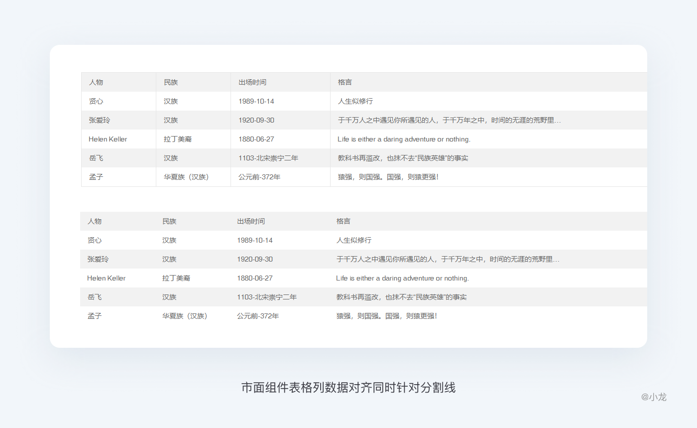 在實際工作中,主流框架組件,表格列數據對齊同時針對分割線,雖不是完美中的對齊,但開發成本低。