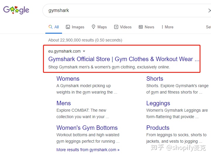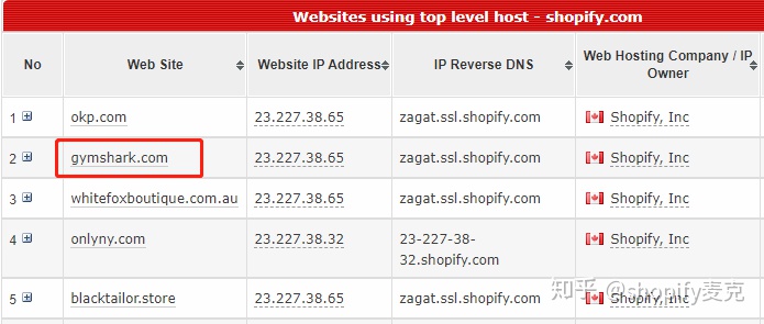 至於我怎麼找到這些店鋪排名,很簡單,手動在某歌輸入myip shopify,中間有一個空格啊,然後點擊出來的第一個搜索結果頁面,就看到我這個截圖了。