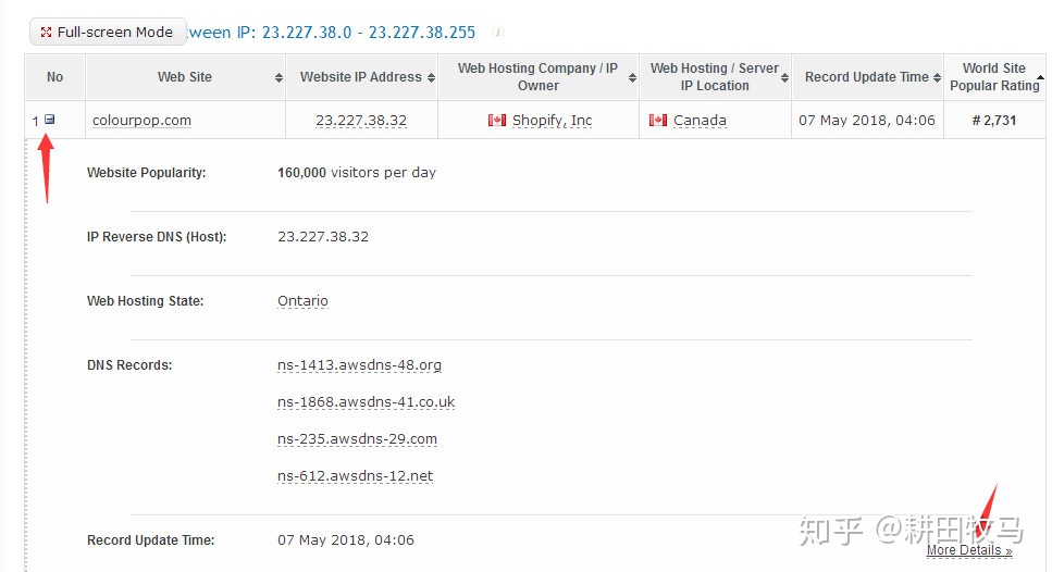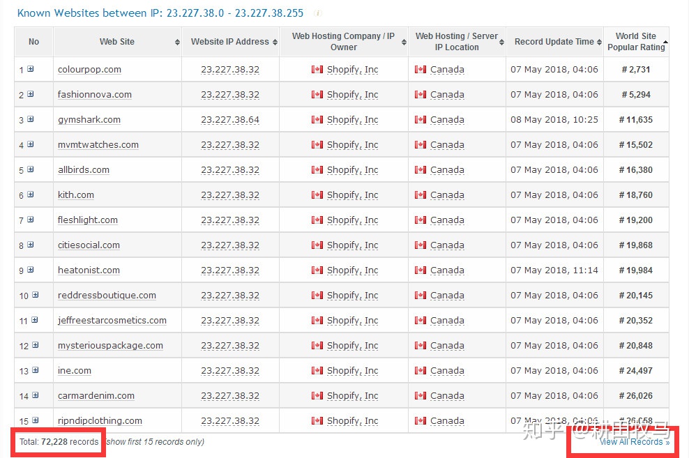 因為shopify上的服務器是在加拿大,其中的一個Ip地址為:23.227.38.32,那麼你可以直接利用這個ip,進行競爭對手的訊息查詢,如下圖: