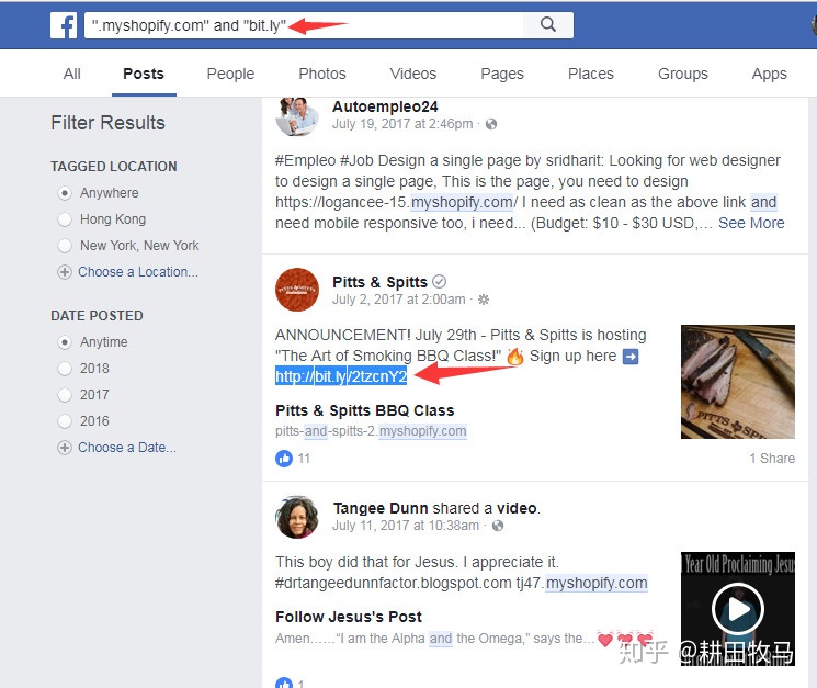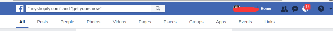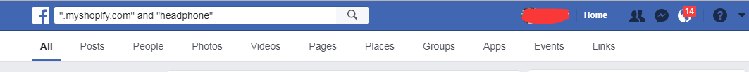 你也可以利用facebook來進行關鍵詞的查詢,關鍵為:.myshopify.com+and“所要查詢的關鍵詞”,如下圖所示: