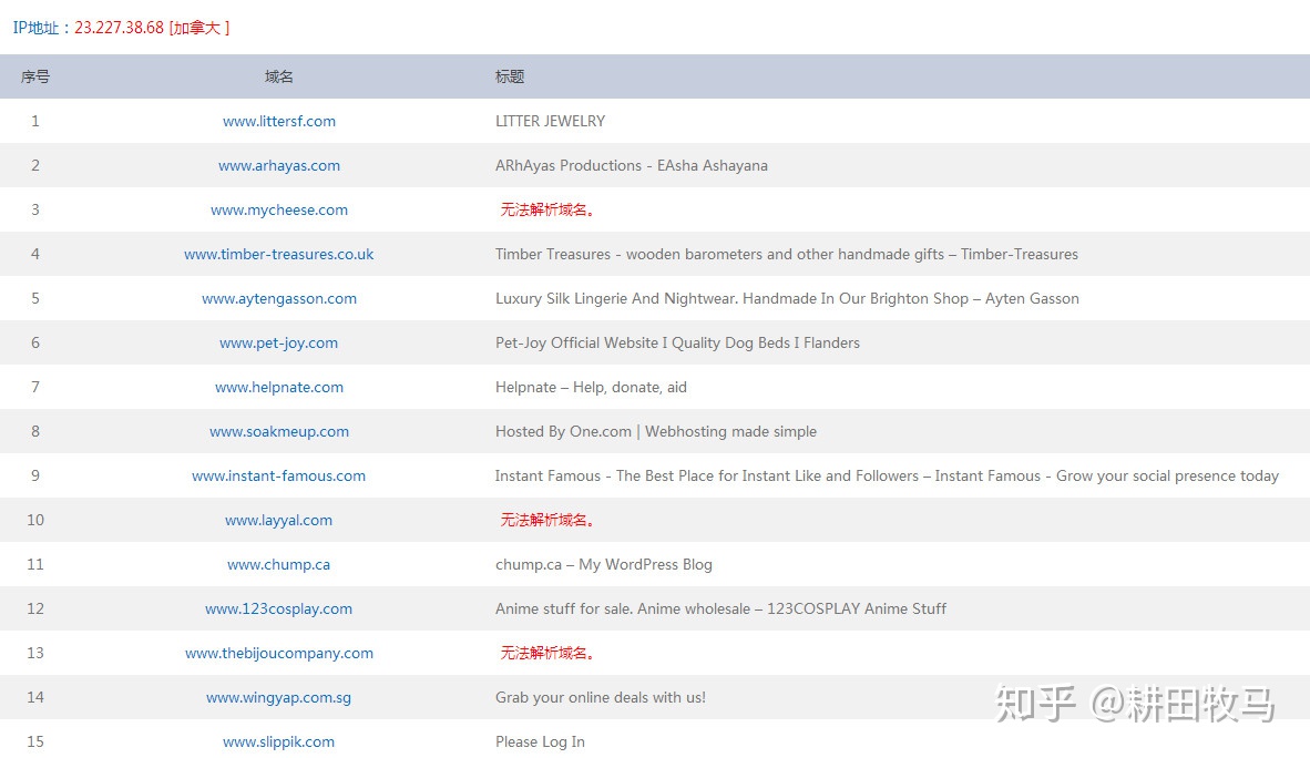 比如以23.227.38.68這個ip來查詢,我們也可以反向的查詢有哪些網站的域名放在這個服務器上,使用的工具有: