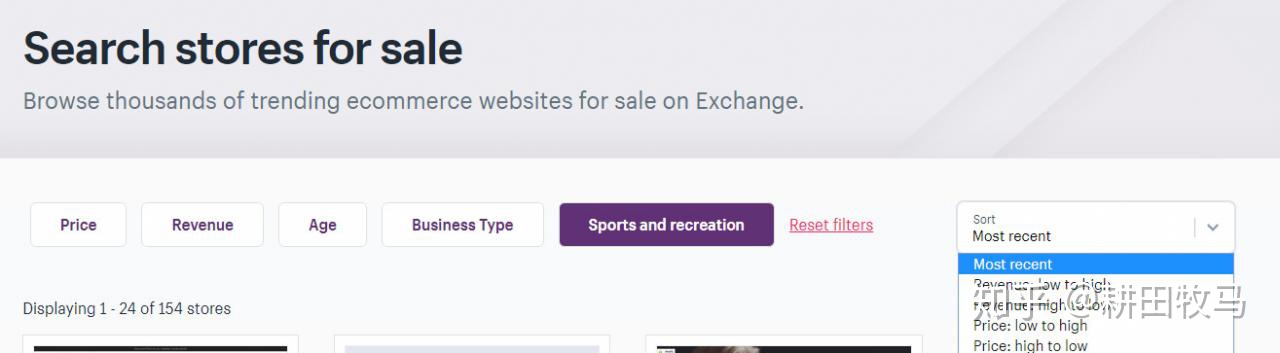 利用Shopify Exchange 也可以找到競爭對手,同時你也可以查看具體的指標,比如價格,收益,網站的之間長度,網站的商業類型等等,可以進行一個快速的排查,如下圖: