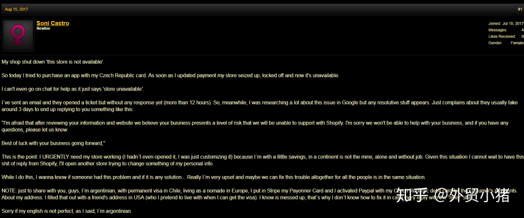 如果在做Shopify 就要做好多方面的準備,因為只要你店鋪被封了,想申請恢復這是不可能的,不管你有沒有違規(至少我們在沒有違規的情況下被封了,被告知不可能再恢復); 最近被封了一個店鋪,對Shopify 失望之極…