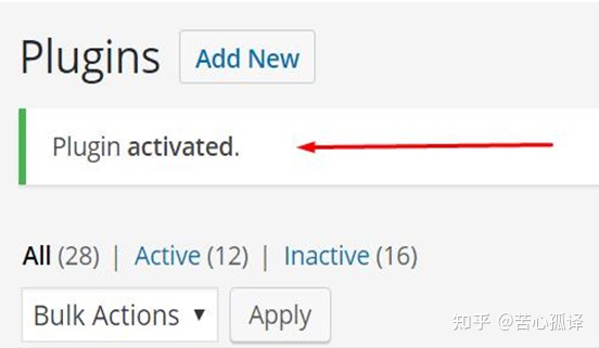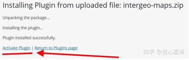 然後點擊出現的“Activate Plugin”(意思是啟用插件)來啟用這款插件。到了這一步安裝也就完成了,我們可以在頂部位置看到已啟用的提示,如下圖所示: