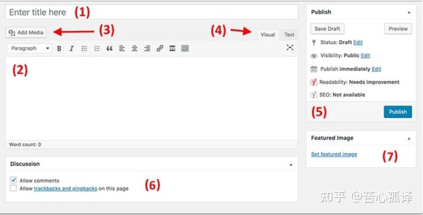 • (7)Featured image。大多數WordPress主題會把這張圖片作為頁面中最主要的圖片顯示出來。