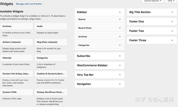 其實Hestia這款WordPress主題除了側邊欄和頁腳部分外,還有好幾個小工具區域,在此我們不做過多講述。