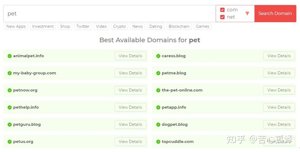 • 包含細分行業、細分領域、細分產品的名稱— 例如,想創建一個跟寵物(pet)相關的域名,域名里最好可以包括pet這個詞。在非寵物領域,這種方法也同樣適用。