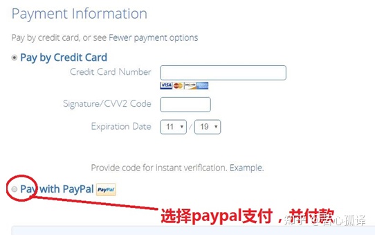 接下來,我們進入付款界面。一般來說,一般不涉及外貿領域的人士沒有國外的Visa,Mastercard等信用卡,我們可以採用接下來點擊more payment options(更多支付選項),如上圖所示。接著就出現了PayPal界面,看下圖:
