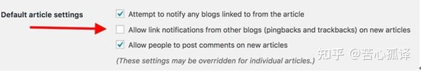 WordPress幾次更新後仍然保留了廣播就引用通知的功能。其實,要創建一個新的網站,用戶可以不用勾選廣播及引用通知功能。如下圖所示,並按照Settings → Discussion的方式進入設置頁面。