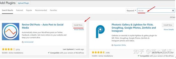 這裡我要安裝一個叫其實,在搜索插件時,都不需要全部輸入插件名稱,只需要在搜索欄裡輸入“Revive”,然後在鍵盤上按下Enter鍵,沒幾秒鐘就會看到下面的圖片: